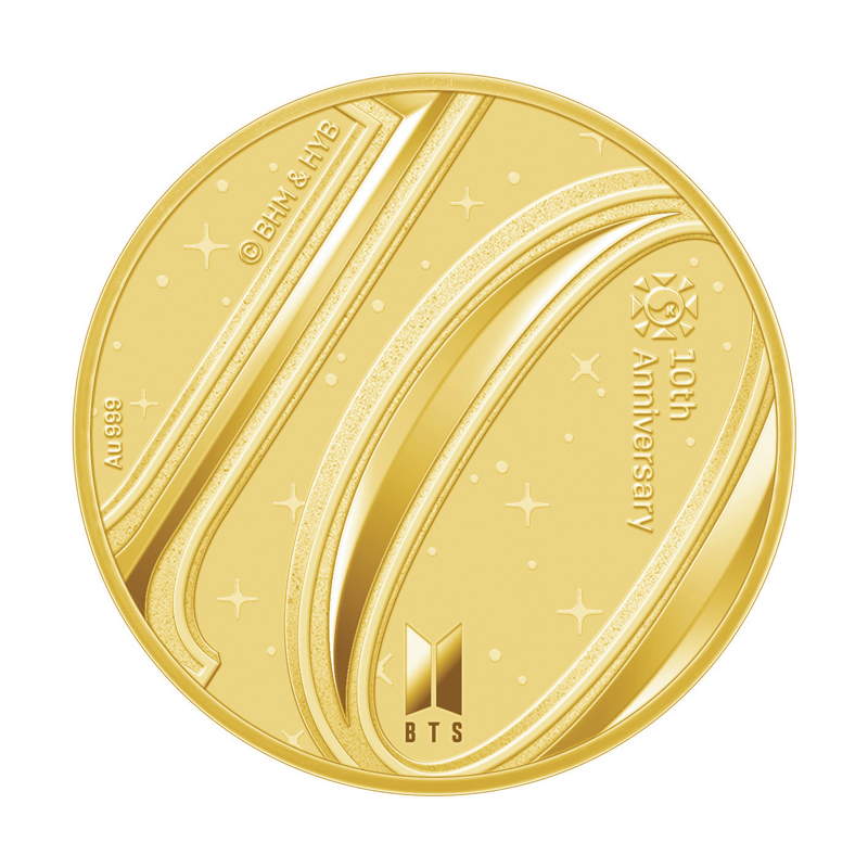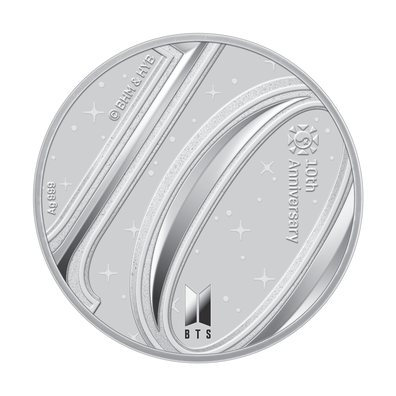 韓国造幣公社とHYBEによる初のコラボレーションが実現しました。2023年、BTSがデビュー10周年を迎えることを記念するもので、HYBEとの提携によって実現した公式記念メダルとなります。