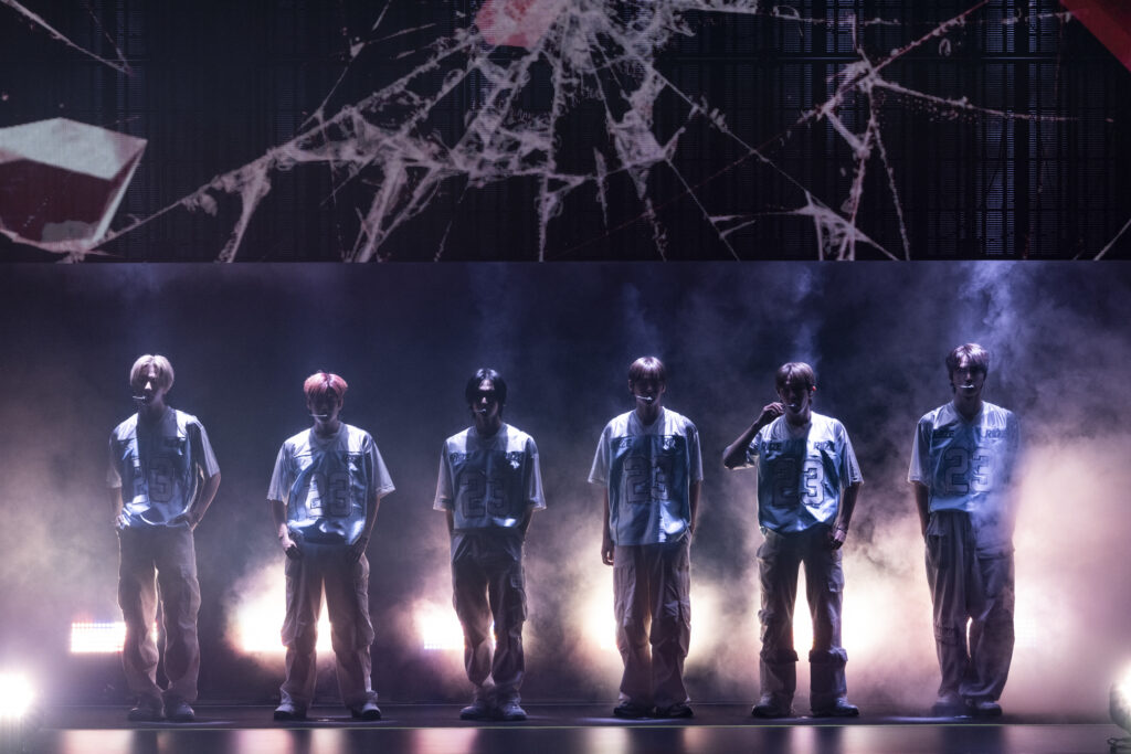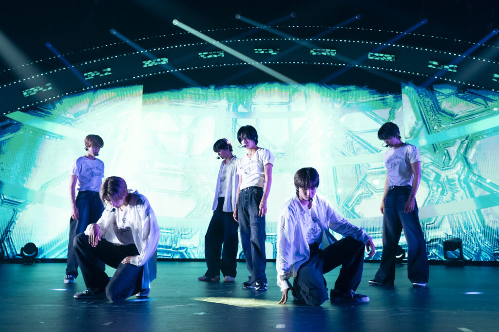 ステージ背面を覆うビジョンにオープニング映像が映し出され、その後ろからショウタロウ、ウンソク、ソンチャン、ウォンビン、ソヒ、アントンが登場。RIIZEのグループカラーであるオレンジ色に光るペンライトを手にしたBRIIZE(ファンの愛称)から大歓声があがり、ライブは「Siren」で幕を開けた。ホール会場だけにメンバーの姿が至近距離で確認することができ、指先、足先まで揃える細かな振りや、ダイナミックに移動しながら形成されるフォーメーションなど、臨場感が半端ない。BRIIZEたちは目の前のメンバーに歓喜しながらも、曲に合わせて掛け声を上げ、一気に会場のボルテージを上昇させた。