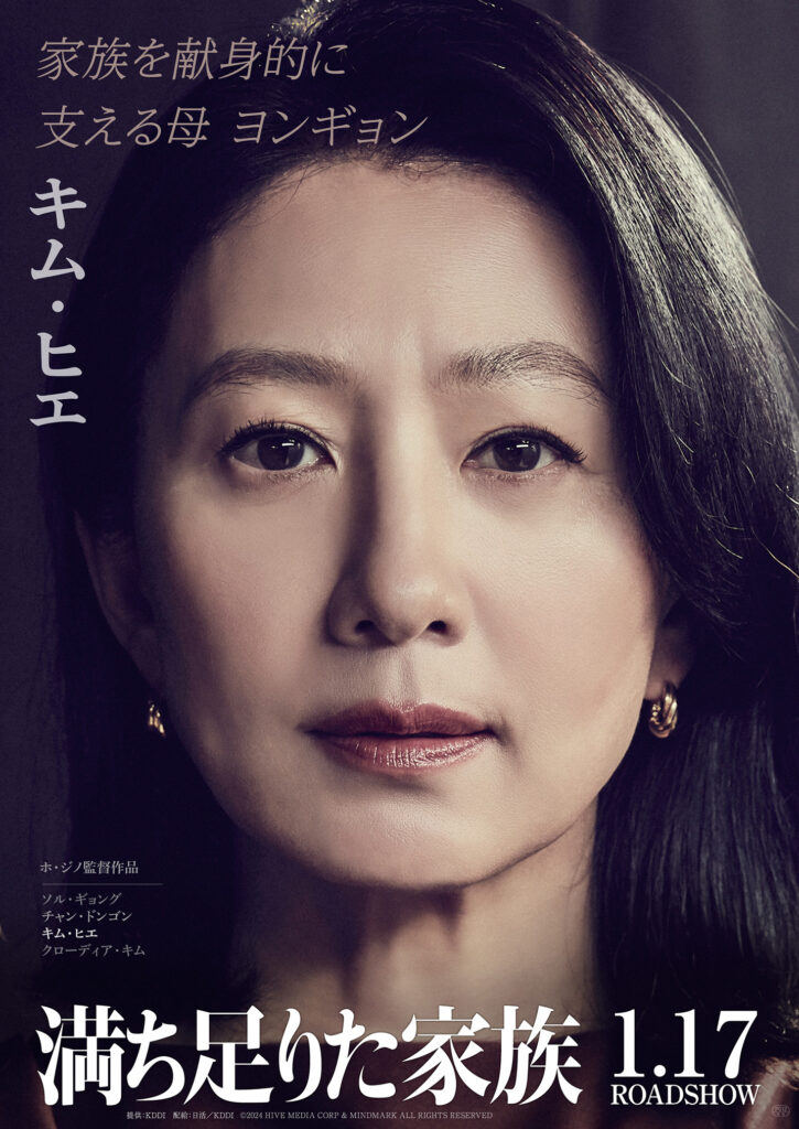 『⼋⽉のクリスマス』(98)で商業⻑編監督デビューするなり韓国映画ニューウェイブの始まりをいち早く世界に告げたホ・ジノ監督。その演出⼒への絶⼤な信頼から数多の俳優たちが出演を嘱望してきたホ・ジノの最新作『満ち⾜りた家族』では、家族間の親密な描写を細やかに積み重ねながら、⼈間の⼼理の奥底に潜む淀みや揺れ動きを緻密に、衝撃的に描きあげた。キャストには、『ペパーミント・キャンディー』(99)『オアシス』(02)などのソル・ギョング、『ブラザーフッド』(04)などに出演の⼈気スターであり約5年ぶりのスクリーン復帰となるチャン・ドンゴン、韓国ケーブルテレビ史上最⾼視聴率を記録したドラマ「夫婦の世界」(20)に出演のキム・ヒエ、『アベンジャーズ / エイジ・オブ・ウルトロン』(15)、『ファンタスティック・ビーストと⿊い魔法使いの誕⽣』(18)などハリウッドでも活躍するクローディア・キムら韓国を代表する名優が揃う。 そんな俳優陣の競演により、ホ・ジノならではの細やかで陰影に富む⼼理描写をさらに究め、⾃⾝の最⾼峰とも呼ぶべき傑作に結実させた。