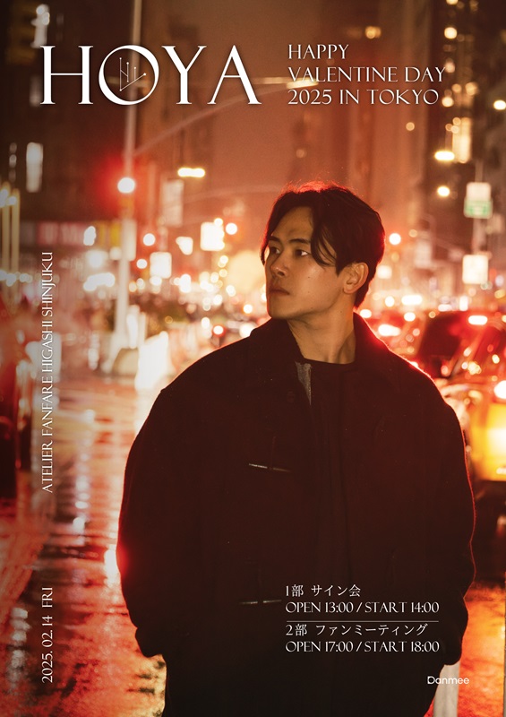 | [HOYA Happy Valentine Day 2025 IN Tokyo] ●開催日時2025年2月14日(金) 〈1部〉13:00開場/14:00開演 サイン会 〈2部〉17:00開場/18:00開演 ファンミーティング ●会場アトリエファンファーレ東新宿(〒169-0072 東京都新宿区大久保1-3-15アクロス東新宿B1F) |