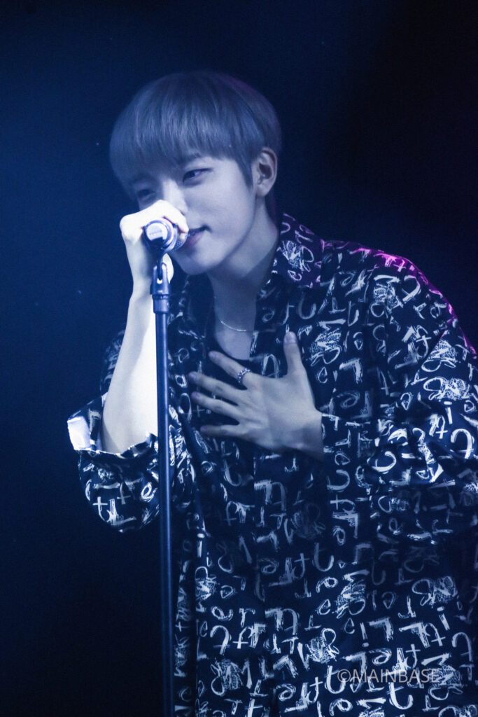 トークのときは打って変わった朗らかな雰囲気。「最近髪の毛をめちゃ短くした」と凛々しい表情で自己紹介をするビョンフン。確かにデビュー以来1番の短さのよう。続いて「ビョンフンさんと一緒にめちゃ髪の毛短くしました、ヒジュです。」と弾ける笑顔。ジュンヒョンは話そうとした日本語をド忘れし会場を笑顔にさせ、ノユルとヒョンハも口々に最近香港のコンサートへ出演してきたことなどを日本のファンらへ報告した。