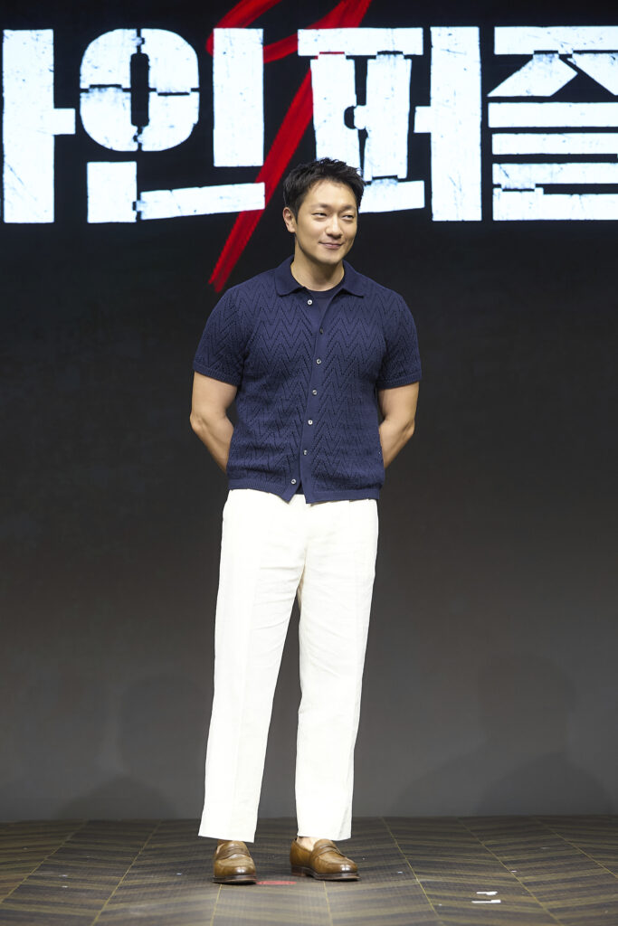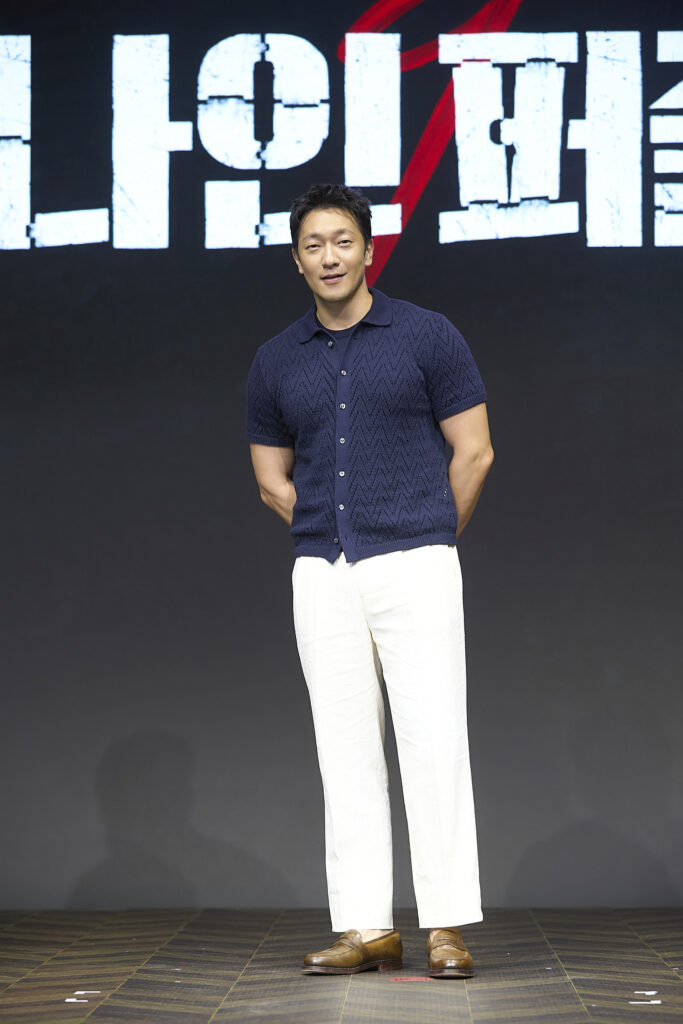 キム・ソンギュンが演じるのは、漢江署刑事課 2 チームのチーム長ヤン・ジョンホ。「ユン監督は、映画「悪いやつら」で私を映像デビューさせてくださった監督です。約 13 年ぶりの再会は、感慨深いものがありました。大きな役を与えてくださり、感謝しています。ジョンホは、原理原則通りに動きたい人物で、面白みのない人。これまでも刑事役を演じてきましたが、今まで演じてきた刑事役とはテイストが違い、折り目正しく、しっかりした人物なので、満足しています」と役への愛情をアピールした。
