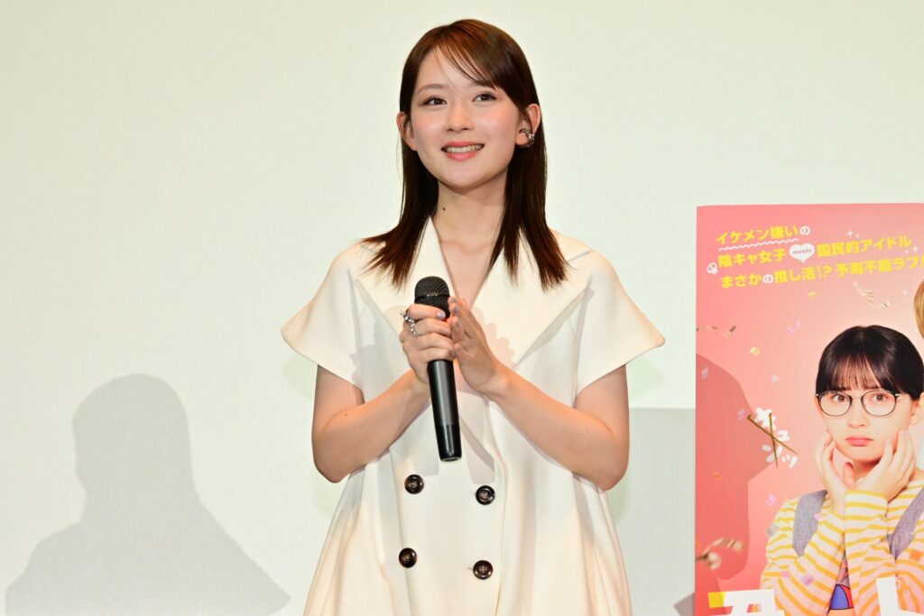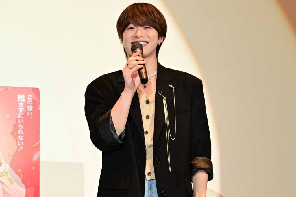 6月20日(金)に公開し、イベント前日の6月28日(土)までに観客動員数15万人を突破し、興行収入も2億1千万円を突破した『君がトクベツ』。推し活をモチーフに推す側、推される側の気持ちに感動すると出演者ファン、推し活をしている人の評価が高く、この日の来場者は25回目鑑賞という観客や、台湾、香港、韓国など海外から駆け付けたファンで客席は埋め尽くされた。国民的アイドルグループLiKE LEGEND(通称:ライクレ)の最強の愛されリーダー・桐ヶ谷皇太を演じた大橋は「ど~も!プリン食べ過ぎてお尻プリンプリン!大橋和也です!」とお決まりフレーズで挨拶。するとイケメン嫌いの陰キャ女子・若梅さほ子役の畑も「ど~も!みんなの心を、ひとりじ“めい”!畑芽育です!」とオリジナル挨拶を発動。大橋以上の歓声を受けて「隣りでずっと大橋さんの挨拶を見ていたので、私も何かしらやらねばと…。ようやくここで披露することが出来ました~!」と声を弾ませていた。