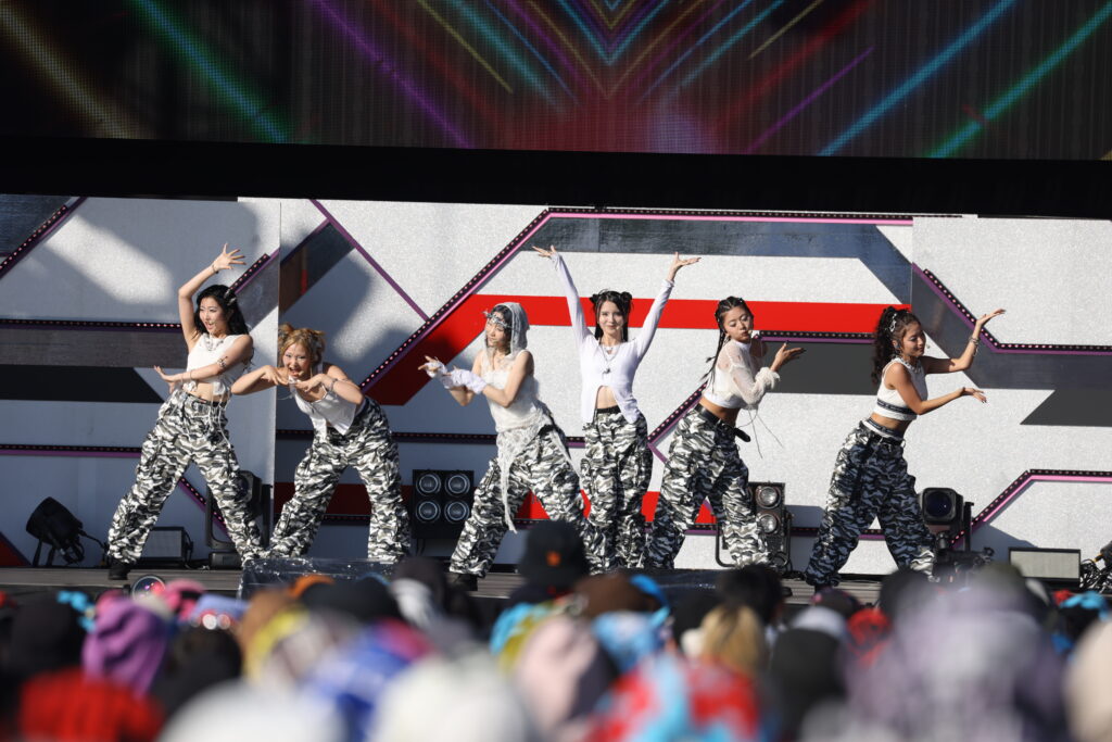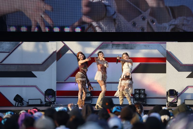 MCでは、パフォーマンスの印象と打って変わって「暑い〜!」とかわいい笑顔を見せるメンバーたち。自己紹介でRINOが「ボルテージ100%でめちゃめちゃアガってる」と話すと、「次は皆さんの心の響くように」とm-flo ☆Taku Takahashiプロデュースの初バラード曲で、現在放送中のドラマ『恋愛禁止』主題歌「コエ prod.☆Taku Takahashi(m-flo)」を披露。少しだけ暑さが落ち着き、風が吹き抜ける会場に3人の伸びやかな”コエ”が響きました。ラストは「夏を感じていこ〜!」と「Statstruck」。メンバーがタオルを片手に「私たちといっしょに最高の夏、過ごさない?」とアオると、会場も拍手と歓声でレスポンスしました。