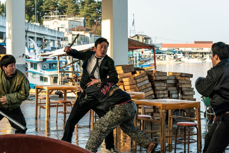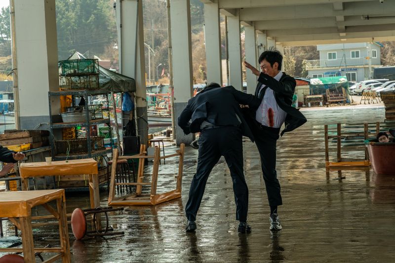 弟のソクテが死んだあの夜、何があったのか?弟の死を悲しみながらも真実を追うミンテ(ハ・ジョンウ)、彼の動きを阻止しようとする勢力。複数の相手に対し無表情で前へ前へと突き進んで行く・・・。ジャージでもスーツでも、殴る、蹴る、突き飛ばす、その場にあった冷凍した魚をも凶器にして振り回す‼!!真実を問い詰める鬼気迫るシーンからは、ミンテの悲しみから怒りへと変わる、壮絶な復讐シーンが窺えます。