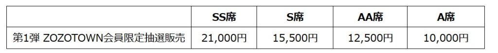 ※座席は全席指定です。チケット購⼊および抽選販売についての詳細はZOZOTOWN特設サイトをご確認ください。