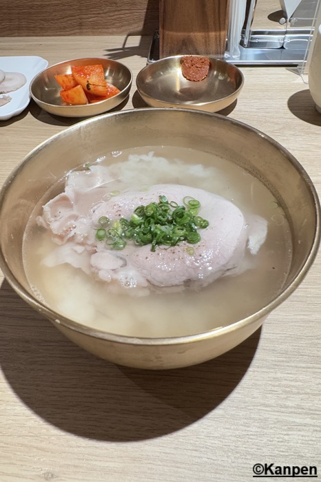 「デジコムタン」は1口目は透明なスープだけをスッカラ(スプーン)ですくい味わってほしいそうだ。 スープの下のごはんやウデ肉を早く食べたい気持ちを抑え、まずはスープを一口。入れた瞬間、口の中にスープの何とも言えない良い味が広がり、あまりのおいしさに思わず無言のまま何度も頷いてしまう。 心の底から「あああ、本当に美味しい!」という言葉が出る。ごはんや肉のことを忘れ夢中でそのまま何度もスープだけを口に運んでしまう。オクドンシクの「デジコムタン」は、じっくりと煮込まれた「ウデ肉と香味野菜」から出たスープの旨味を最大限に味わえるように、塩のみで味付けされている。 それがスープやご飯の味を最大限に引き出している。 豚のスープなのに骨が入っていないため透明、のどごしすっきり爽やか!