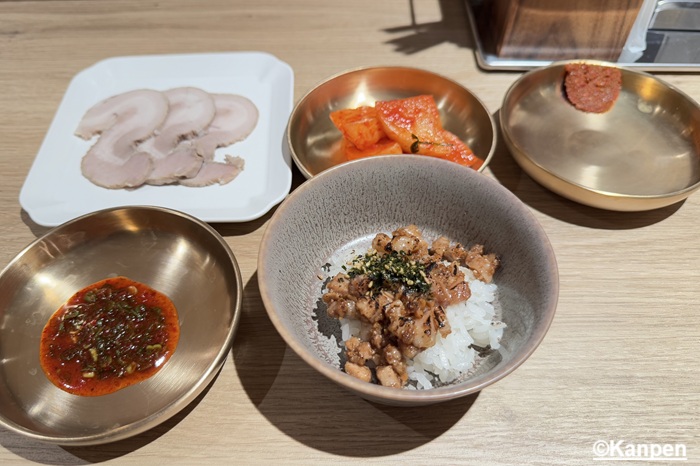 スープを作る時に使用した豚ウデ肉をひき肉にして、自家製のにんにく醤油とバルサミコ酢で味付けしたものを温かいご飯の上に乗せたもの。韓国ではよく丼はごはんと具をしっかり混ぜて食べることが多いが、この「デジトッパプ」は混ぜずにそのままスプーンですくって食べてほしいとのこと。イメージ的に例えるとすれば一番近いのはチャーシュー丼のようだが、スープを出すために使用された肉なので脂肪がほとんど無い上、とても柔らかい。しっかりと味付けられているので、シンプルながら極上の味わい。 スープを出したあとの肉を無駄にすることなく美味しい料理に昇華され、フードロスもしっかりと考えられているのも食材を大事にするオクドンシクらしい。ちなみにこれはなんと日本限定のディッシュ!! これを食べたら、きっと日本に暮らしていて良かったと思うだろう♡