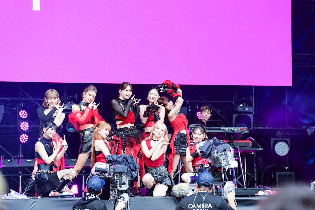 そして「キラキラ」や「Summer Magic」といった夏にぴったりな新曲も披露。ステージの端まで広がり、手を振りながら一体感を高め、はつらつとしたパフォーマンスで会場を魅了します。終盤では、「&ME (ME:I Ver.)」「Cookie Party」「Hi-Five」と、 ME:Iのフェスセットリストでは定番となっている楽曲をロッキンだけの特別なメドレーで披露。AYANEが“Wanna be like you Mystic, my muse”と歌い出すと、会場からは思わず歓声があがります。MOMONA、TSUZUMIと続き、ラストの「MUSE」へ。力強さとしなやかさを兼ね備えた華やかなステージを届けました。