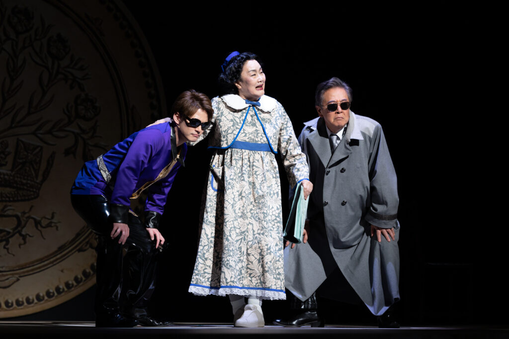 ドタバタ劇であるというのが、まず⾯⽩さの⼀つだと思います。キャストが 4 ⼈しかいないので、⾃分の持ち場が崩れたら⼤変なことになるんですよ。その綱渡り感があります。しかも、この⼤先輩 3 ⼈の中に僕も重要なピースで⼊っているという嬉しさもあり、みんなでパスを出し合ってつなげていく⾯⽩さもあります。もし、若⼿ 4 ⼈でこの作品を演じたらきっとこの⾯⽩さは出ないのだろうと思います。⼤ベテランの⽅々がドタバタと動いているというのが⾯⽩いし、この作品の⼤きな魅⼒だと思います。