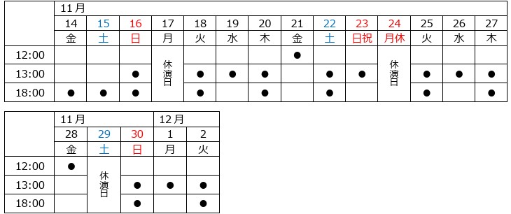2025 年 11 ⽉ 14 ⽇(⾦)〜12 ⽉ 2 ⽇(⽕)