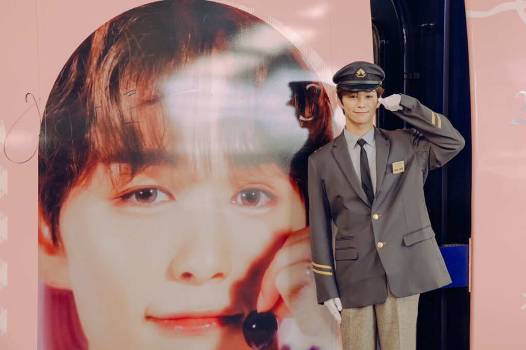 ラッピングラピートの運⾏を記念して、11⽉5⽇(⽔)に⼤阪府出⾝のメンバー 後藤威尊と佐野雄⼤が南海難波駅の1⽇駅⻑に就 任。南海電鉄の制服ジャケットと帽⼦を着⽤した2⼈は、南海電鉄運輸⾞両部⻑の吉⽥実⽒より委嘱状を受け取り、メンバーの姿が⼤きくラッピングされた#マジラピ号にサインをしたり、実際に運転席に座り運転⼿体験を⾏うなど、⼤興奮な様⼦。