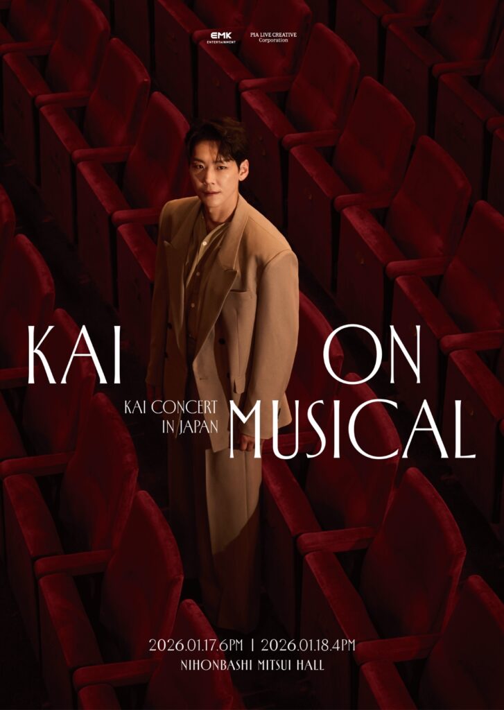KAIは、クラシック声楽を基盤とした圧倒的な歌唱⼒と表現⼒で、韓国ミュージカル界を牽引してきた実⼒派俳優。2025年5月には日本公式ファンクラブ「KAI JAPAN OFFICIAL FANCLUB」を設⽴し、7月にはそれを記念した初のファンミーティングを開催するなど、日本のファンとの絆を着実に深めている。