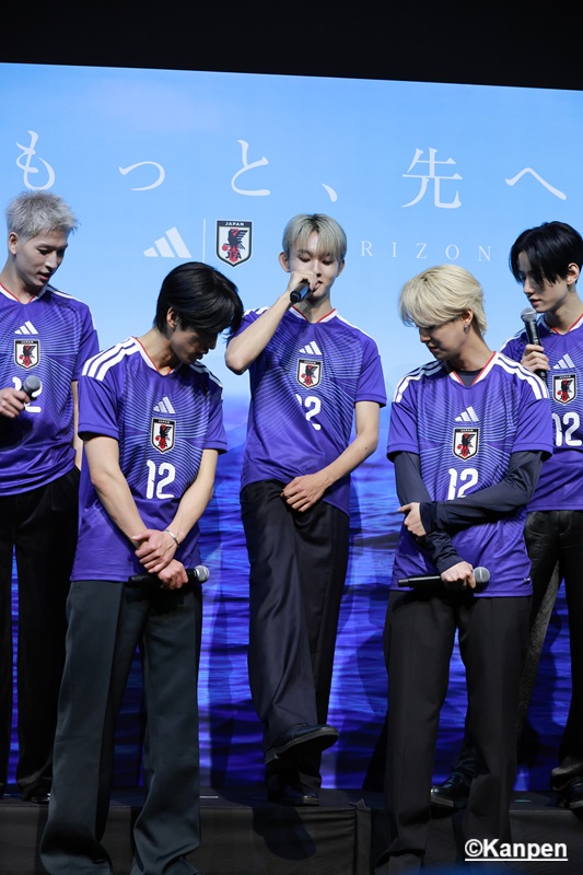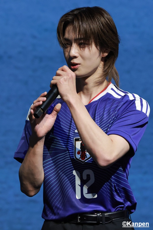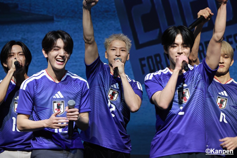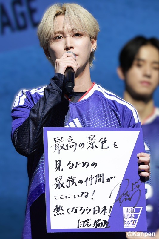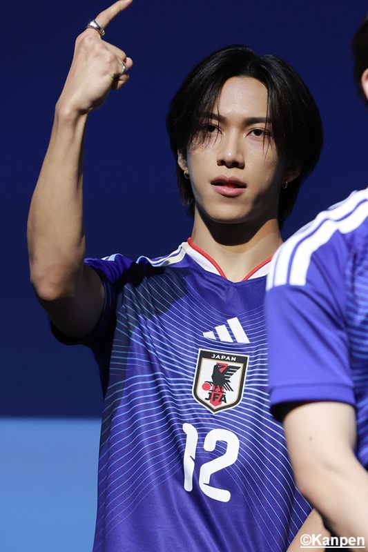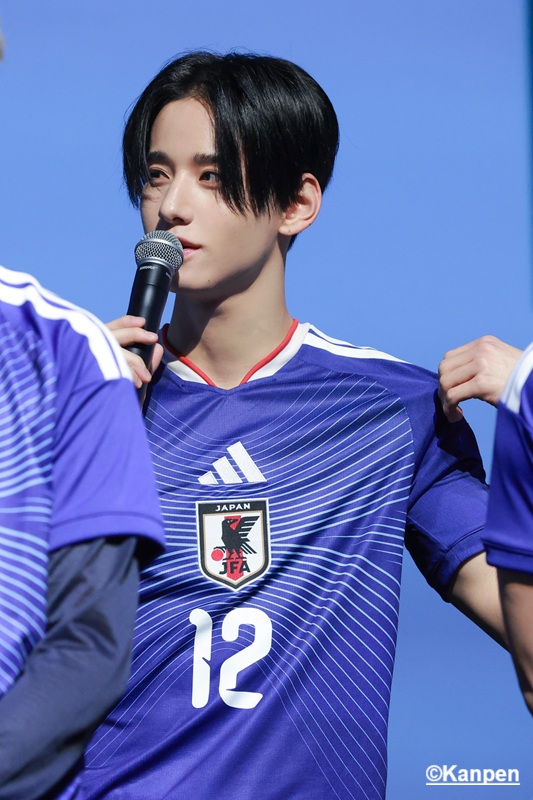 白岩瑠姫 「僕たちはオーディション番組でたくさんの人たちに投票や応援していただき、支えや力に何度も救われ、今があります。サッカー日本代表のみなさんにとって、僕たちもそういう“支え”になれたらと思いますし、日頃から応援しているサポーターのみなさんと力を合わせて世界一に向かって頂を目指して、サッカー日本代表を熱くしていこうと思っています」