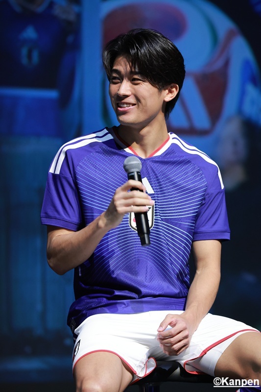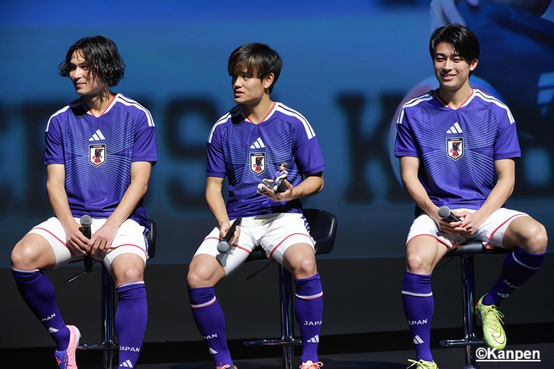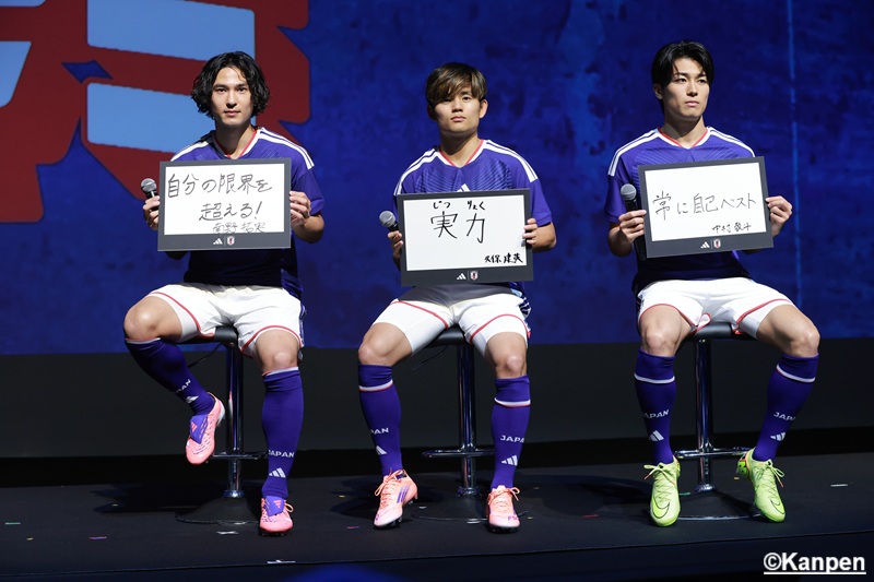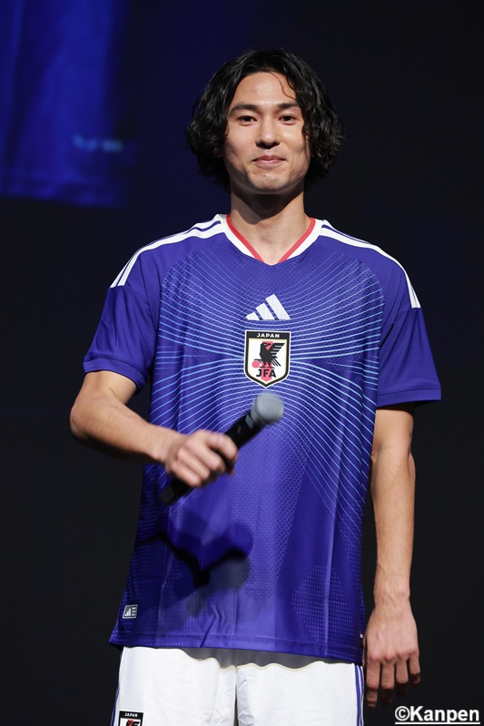 最初に日本サッカー協会 会長・宮本恒靖氏と アディダスジャパン株式会社 代表取締役 萩尾孝平氏から挨拶が行われた。 宮本氏は自身の選手生活での経験を活かし、今回 日本代表のユニフォーム開発にも携わったそうだ。長い時間をかけて作ったユニフォームに 「どのような反応があるかワクワクしている」と語った。 萩尾氏は 「アディダスの創設者から引き継がれている『最高のものを選手に届ける』という精神から、最高の機能性、パフォーマンスを発揮できることを第一に開発を進めて来た」と、製品に熱い想いを込めて完成させたことを明かした。 宮本氏はワールドカップに向け「サポーターの方たちにも是非このユニフォームを着て応援してほしい」と最高の景色を見るために選手・サポーター一丸となって闘いたい強い気持ちを伝えた。