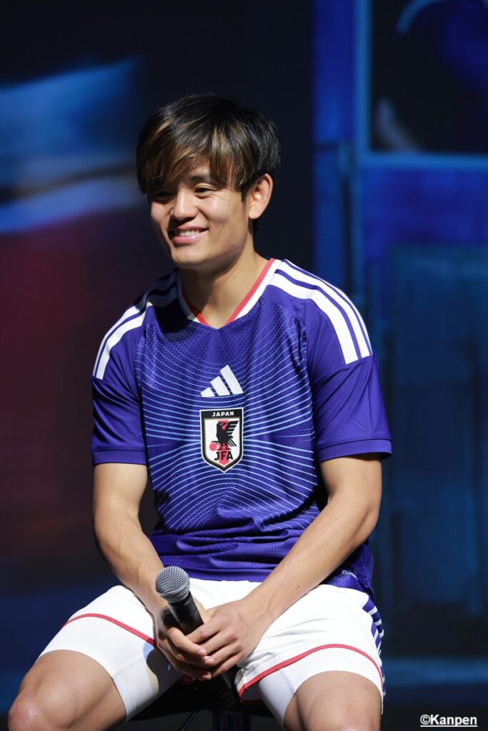 この新ユニフォームを着て、最高の景色を見るために闘う選手を代表してSAMURAI BLUE(日本代表)の南野拓実選手、久保建英選手、中村敬斗選手が新ユニフォームを着て登壇し、アディダスジャパン株式会社 高橋慶多氏と共にトークセッションを行った。