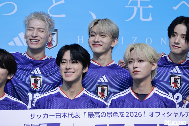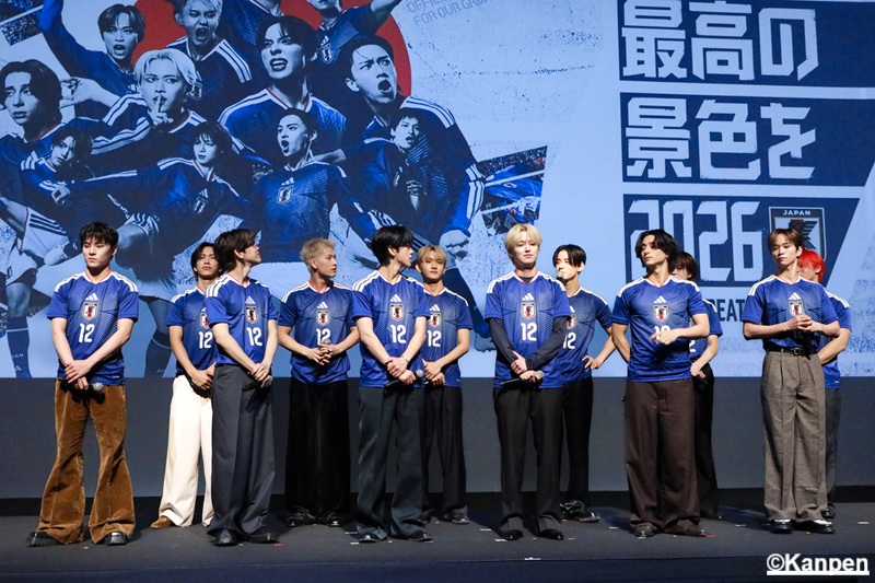 2025年11月10日(月)公益財団法人日本サッカー協会とアディダスジャパン株式会社による【JFA・アディダス 「サッカー日本代表 2026(読み:さっかーにほんだいひょうにーまるにーろく)」 キャンペーン共同発表会】が都内にて行われ、SAMURAI BLUE(日本代表)の南野拓実選手、久保建英選手、中村敬斗選手が登場。 また、グローバルボーイズグループJO1、INIの2グループからサッカーをこよなく愛する12名が、サッカー日本代表「最高の景色を2026(読み:さいこうのけしきをにーまるにーろく)」オフィシャルアンバサダーに就任し、特別ユニット「JI BLUE(読み:ジェーアイ ブルー)」として日本中のサッカー熱をさらに盛り上げるべく、新たな応援アクションを行うことが発表となった。
