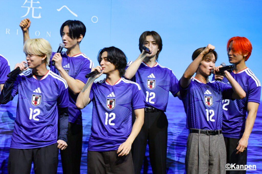 川西拓実 「僕たちはアーティストとして活動していてサッカーとはフィールドが異なりますが、掲げた目標や叶えたい夢、同じ方向を向いて応援してもらうことの心強さを知っている僕たちだからこそ、日本代表みなさん、サポーターのみなさんと一緒に世界一を目指して声援を届けたいと思います」