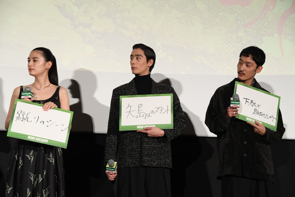 水上は、「こんなにたくさんの方々に観ていただけていることが嬉しいです。その一言に尽きるのですが、従来のヤンキー映画とは一味違う、令和ならではの新しい作品にしていくという一つ芯が通った作品になったと思います。これから一人でも多くの方に観てほしいと思うので、ぜひお友達やご家族、お知り合いに広めてください!」と熱く呼びかけ、木戸は「無事に公開されたことを本当に嬉しく思います。そして、ここからたくさんの方に観てもらうために、すでに観てくださったみなさまの感想が僕らにとってもチームウィンブレにとってもすごく励みになるので、いろんな人に感想を伝えていただけると嬉しいです」と熱弁した。フィナーレには、防風鈴と獅子頭連のうちわを掲げた観客たちと一緒に記念撮影。最後まで大歓声に包まれてイベントは締めくくられた。