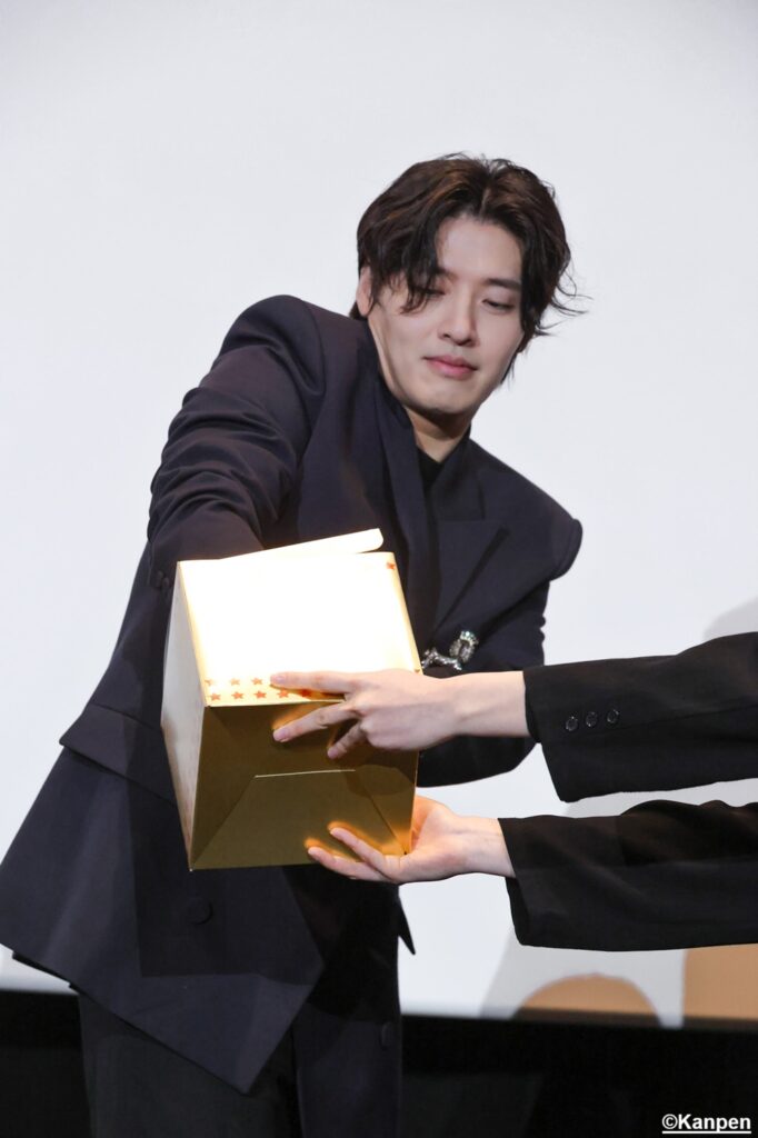 カン・ハヌル 「ありがとうございます。みなさんこんばんは。私はカン・ハヌルです。ありがとうございます!(←日本語) お会いできて嬉しいです。映画はご覧になりましたよね?韓国での公開時、ありがたいことにたくさんのかたたちに愛していただきました。こうして日本のみなさんにもご挨拶ができることになり、とても嬉しいです」