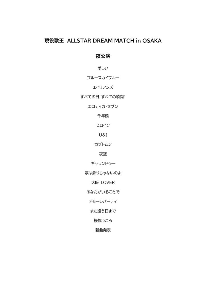 【大阪公演セットリスト】 ※変更になる可能性があります