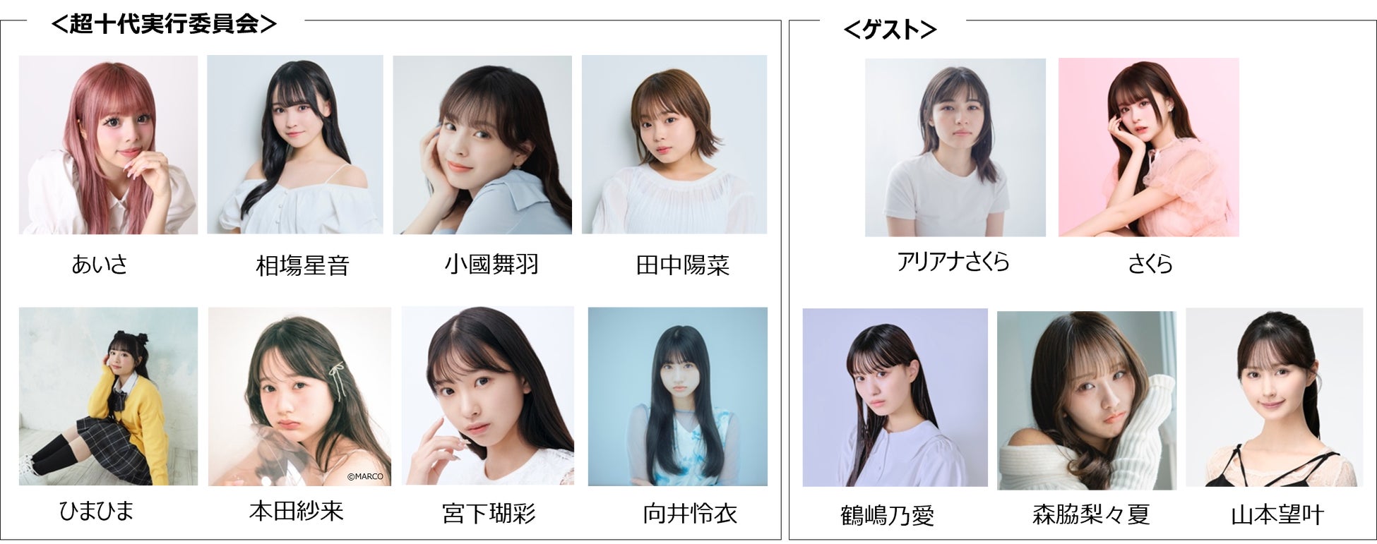 また、出演者には、あいさ、相塲星音、ひまひま、本田紗来、向井怜衣ら、多方面で活躍する十代のメンバーが集結。さらにゲストにはアリアナさくら、さくら、鶴嶋乃愛、森脇梨々夏、山本望叶など豪華な顔ぶれが続々と出演決定。多数のモデル、YouTuber、TikTokerなど十代を中心に支持を集める出演者たちが集結し、来場者とともに、会場とオンラインの両方でイベントを熱く盛り上げます。