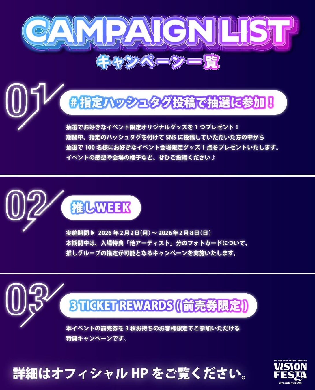 VISION FESTAの開催を記念して、会期中に各種キャンペーンを実施。キャンペーンでよりお得にVISION FESTAを楽しみましょう!