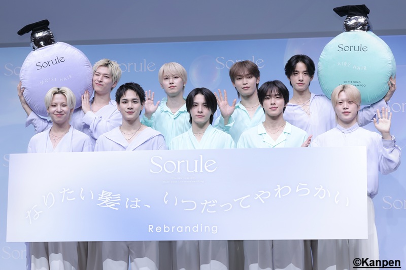 髪のやわらかさという本質に立ち返り、日々のケアで迷わず選べて、自然に使い続けられる“やわらかさ”を追求するセルフケアブランドとしてリブランディングした「Sorule(ソルレ)」の新CM発表会が2026年3月12日(木)に都内にて行われ、Soruleブランドアンバサダー就任3年目を迎えたグローバルボーイズグループJO1 が登壇! 新CMのお披露目やリブランディングしたSoruleの魅力について語った。