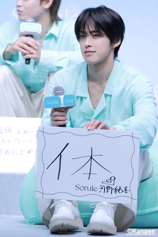 河野純喜:Soruleさんとは3年のおつきあいですが、新しく生まれ変わったSoruleは一味ちがって爽やかでやわらかい素敵な商品なので僕たちもいっぱい使って、かっこいいJO1になって頑張りたいと思います!