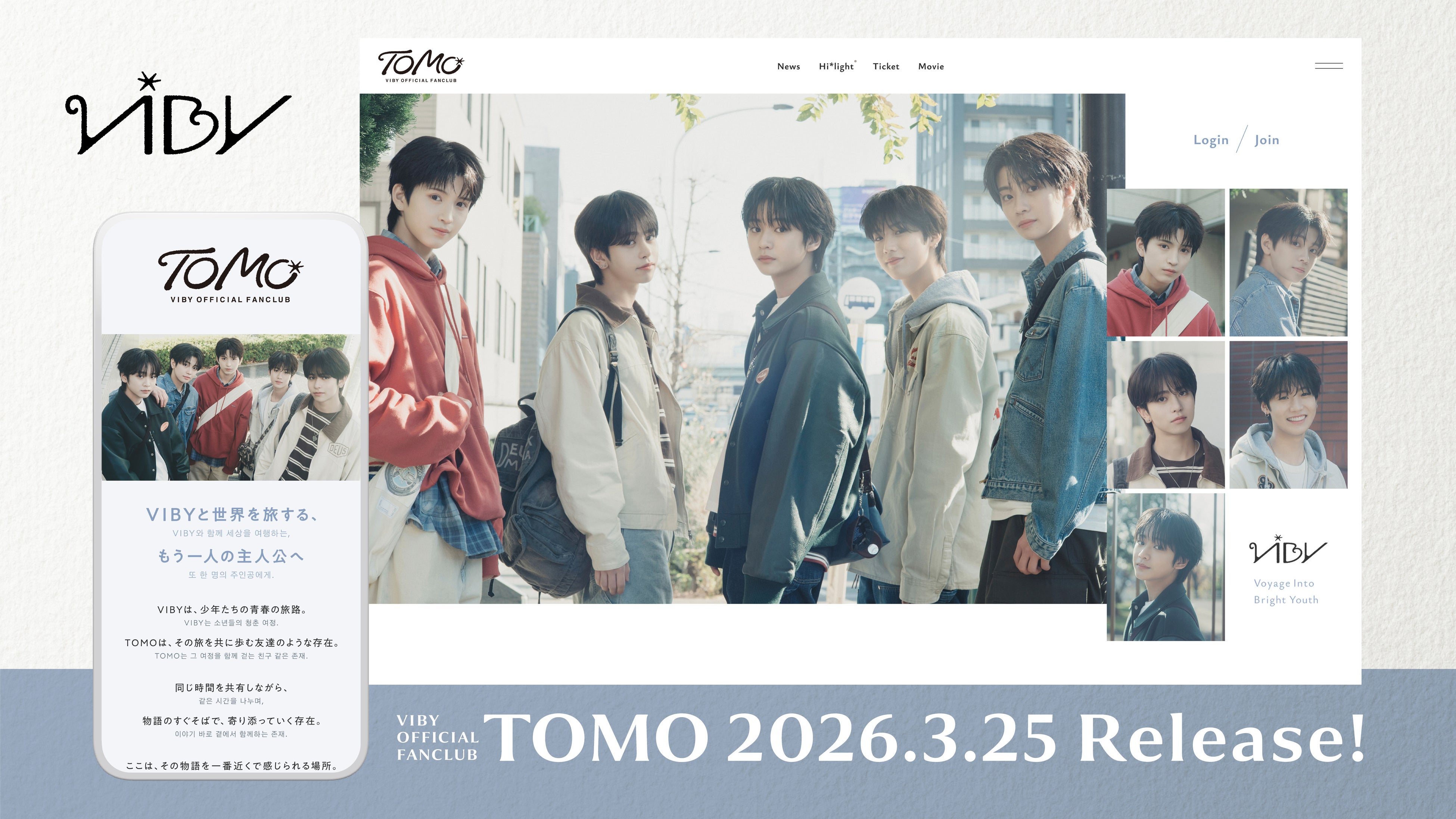 株式会社CAM(以下CAM)は、Rii.MJ(リ・エムジェイ)プロジェクトから誕生した第一弾ボーイズグループ「VIBY(バイビー)」のプレデビューと同時に、オフィシャルファンクラブ「TOMO(トモ)」を、本日2026年3月25日(水)にリリースいたしました。