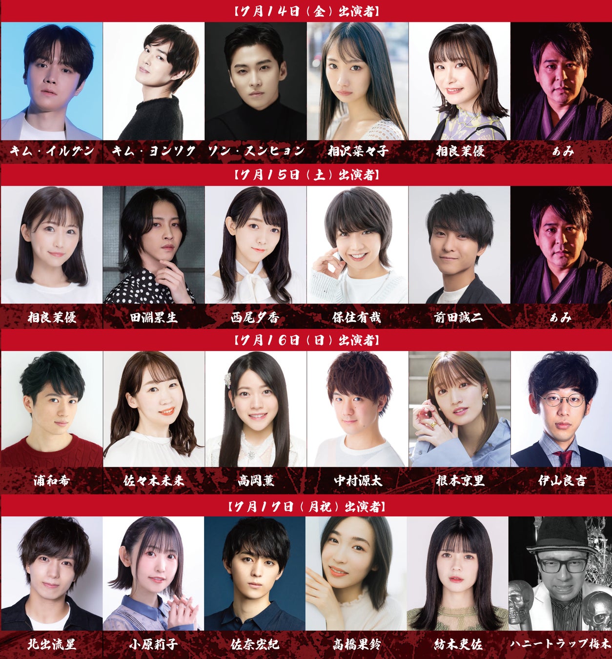 【7/14(金)出演者】 相沢菜々子、相良 茉優、キム・イルグン(TRITOPS*)、キム・ヨンソク(元CROSSGENE)、ソン・スンヒョン(元 FTISLAND)