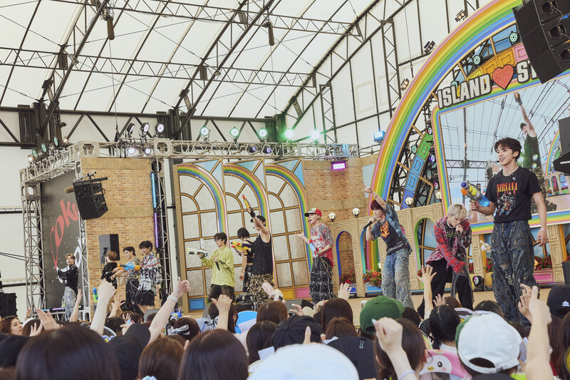 客席に向け水鉄砲を放つだけでなく、メンバー同士も無邪気に水を掛け合い楽しみます。熱気が溢れる中で、メンバー・ファン共にずぶ濡れになり涼しさを感じさせるパフォーマンス演出で、ファンと交流しながらめざましライブ初日を大盛況で締めくくりました。リーダーの與那城奨は、「最高の夏の思い出をありがとう!」と感謝を伝え、JO1らしく会場全体を巻き込んだライブとなりました。