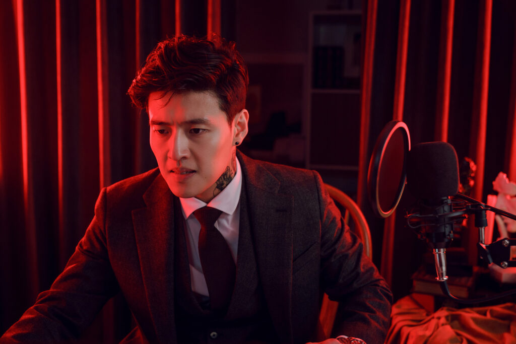 血痕の付いた一枚の紙を握りしめ何かを強く訴えているウサン。怒りと焦燥が入り混じった表情からは、この事件に全身全霊を注ぐただならぬ覚悟が感じられる。謎の人物を追って全速力で走る姿も垣間見え、物語の緊迫感を象徴するシーンとなっている。そして赤い照明に包まれた部屋で配信をするウサン。冷ややかな表情でカメラを見つめるその姿は、理性の奥に狂気を秘めているようにも捉えられ、裏の顔を覗かせる“配信者”の一面を予感させる。