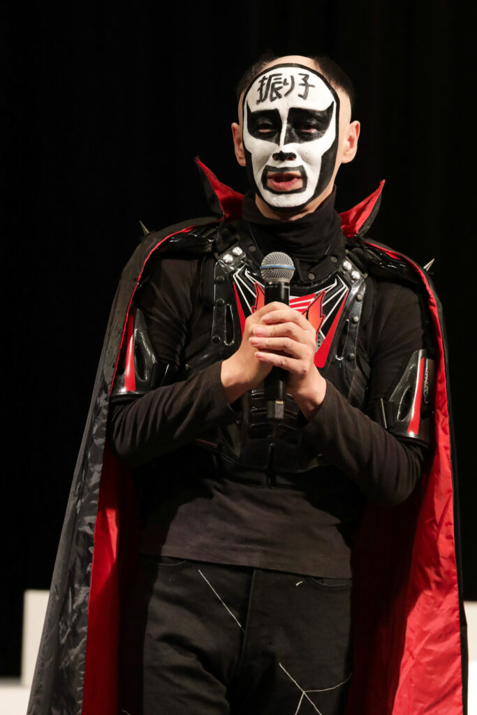 額に「振り子」の文字を書き込んで登壇した本作原作者である鉄拳は「舞台化の話は3年前に一度聞きました。そして今年の7月『舞台のキャストが決まりました』と突然連絡が来て(笑)なのでよくわからないまま、心の準備もない状態で今、必死です(笑)」と言いながら舞台化されたことがとても嬉しい様子だった。そんな鉄拳は「楽屋をウロウロしながらネタ探しをしていた」と芸人らしい行動の様子を内海光司が伝えた。