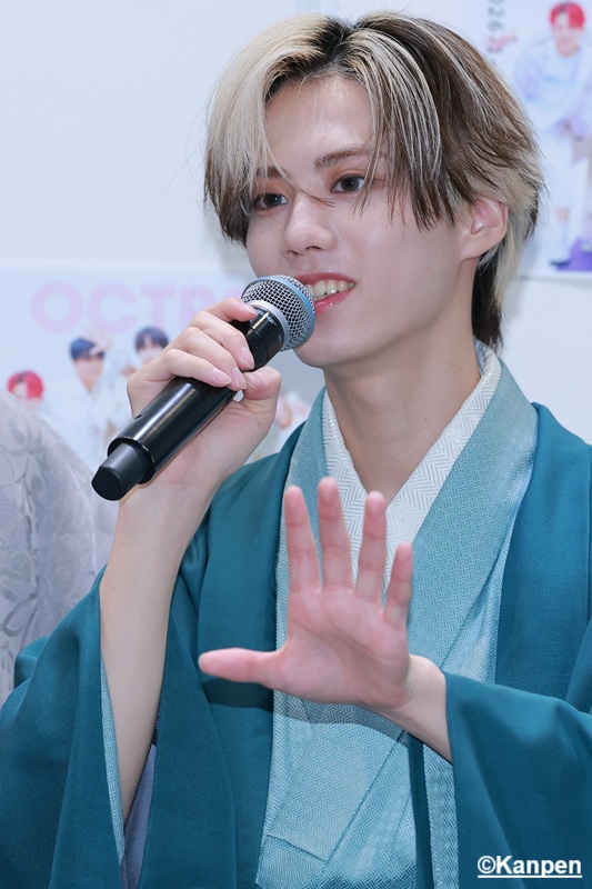 それぞれのメンバーカラーに寄せた美しい色合いの羽織と袴を着た凛々しい姿のOCTPATH が会見会場に並ぶと、華やか且つ爽やかな空気が流れた。