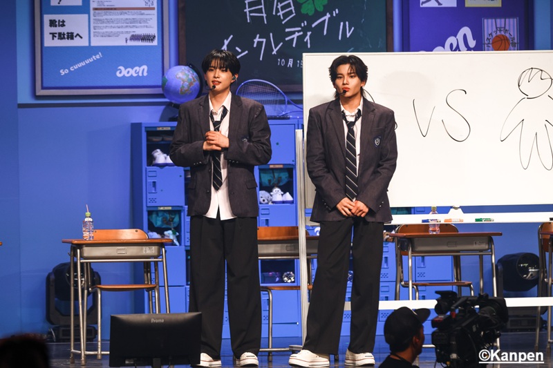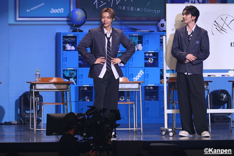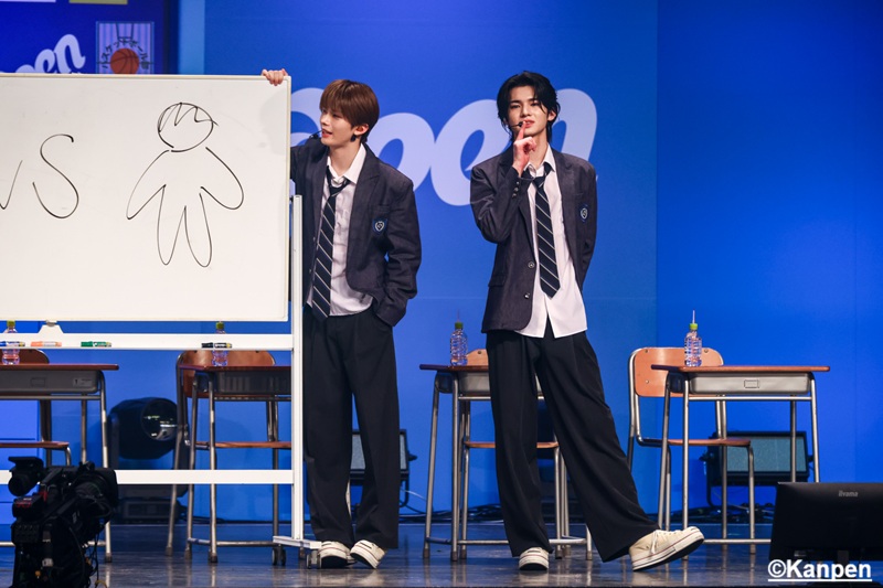次に呼ばれた琉楓(RUKA)も「元気です!」と立ち上がると、aoringから「かわいいぃ~♡」という声があちこちから聞こえて来た。 可愛いという言葉が照れくさくて仕方のない様子の琉楓(RUKA)に 遠山先生から、どのような時にいつも可愛いと言われるのか質問が飛ぶと、隣の雅久(GAKU)が「琉楓(RUKA)の口が亀ぐち(亀のような口)で可愛い」と言い、再び笑いが起こった。その雅久(GAKU)は 先生から名前を呼ばれるといきなり「好きです!aoringが♡ 誰かに言われる前に言っておこうと思って」と言い、aoringをキュンキュン♡させた。 礼央(REO)は「青空組の末っ子、礼央たんで~す!」と可愛いくアピール。再びaoringをときめかせた。京助(KYOSUKE)は「太陽のように元気で~す!」と元気さの度合いが大きいことをアピール、 生徒会副会長でこの日の日直の颯太(SOTA)は生徒会長の雅久(GAKU)と二人三脚で生徒会を運営しているそうだ。輝(HIKARU)は 甲高い声で「はぁ~~い!にんじん大好きです♡ 野菜炒めににんじんをいっぱい入れて、にんじん炒めみたいにして食べています」とかなりのにんじんマニアぶりをアピールした。 雅久(GAKU)いわく、輝(HIKARU)は「叫んでいる時が一番楽しい!」と言って高い声をよく出しているらしい。 たしかに高い声を出すと明るい気分になるかもしれない…。