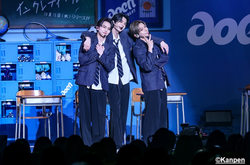 世界的に活躍するアーティストを多数擁するHYBE傘下のYX LABELSから今年デビューした新世代J-POPボーイズグループaoen(読み:アオエン)が 2025年10月15日(水) にリリースした Digital Single『青春インクレディブル』の発売を記念したミニライブ<放課後インクレディブル>を、12月7日(日) 豊洲PITにて開催し(※11月16日NHK大阪ホールでも開催済み)aoring(※読み:アオリン、aoenのファンネーム)と ともに楽しい時間を過ごした。