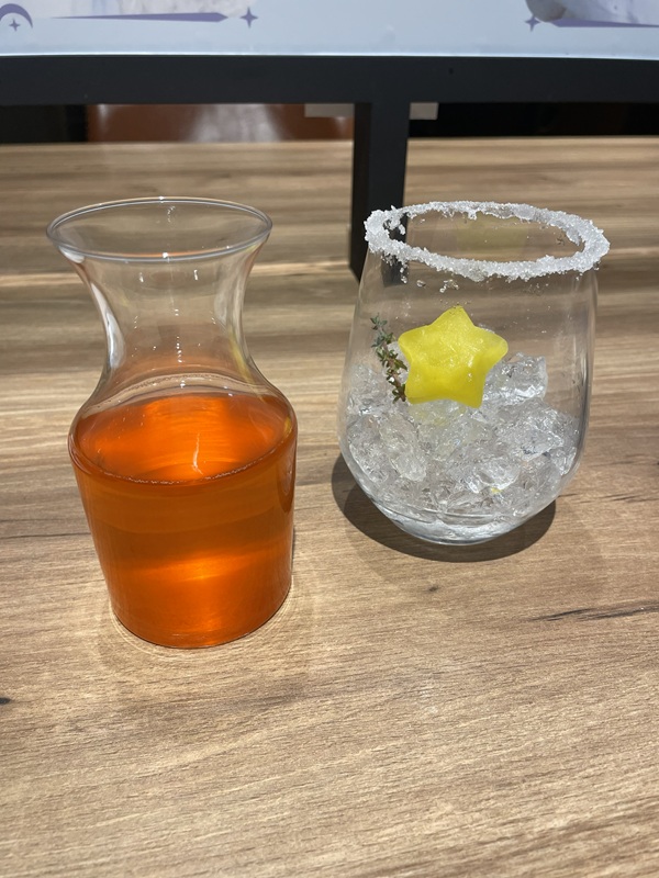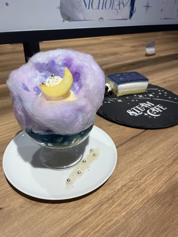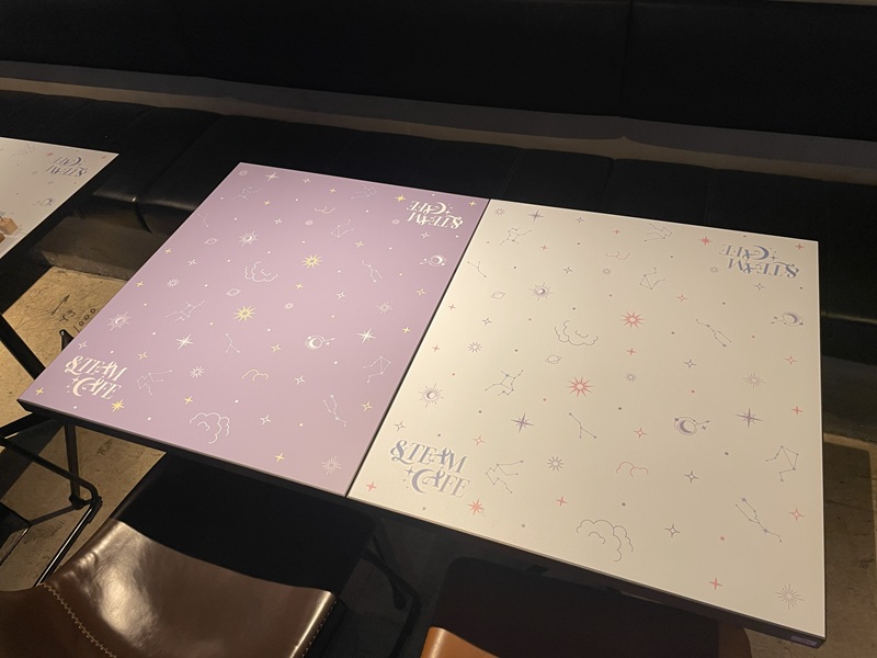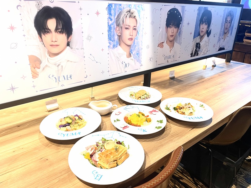 机もパステルカラーの星空をイメージしたデザインが施されており、カフェメニューと共にかわいらしい写真も撮影できる。メンバーの星座をイメージした色鮮やかなフードメニューはもちろん、輝く天の川をイメージしたミルキーウェイチーズケーキや、星空に浮かぶ月をイメージしたムーンパフェなど見るだけでわくわくするようなスイーツも準備されており、フォトジェニックなドリンクメニューと共に楽しめる。