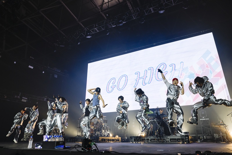 歓声に包まれながらメンバーがステージに登場し、壮大なスケールの「WMDA(Where My Drums At)」をフェスのためにロックアレンジで披露。序盤から観客の心をしっかり掴み、会場をINI色に染めていきます。