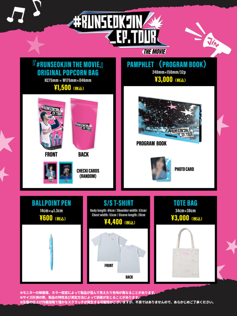 以下、OFFICIAL MERCHANDISEは、全国上映劇場およびBTS Weverse Shop (予約販売)にて販売を予定しております。