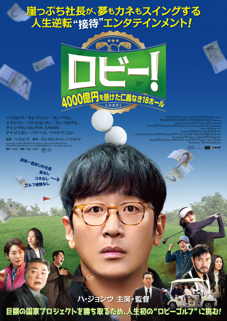 韓国が誇るトップスター、ハ・ジョンウが主演&監督を務めた映画 『ロビー! 4000億円を懸けた仁義なき18ホール』 が、2月27日(金)よりシネマート新宿ほか全国順次公開される。