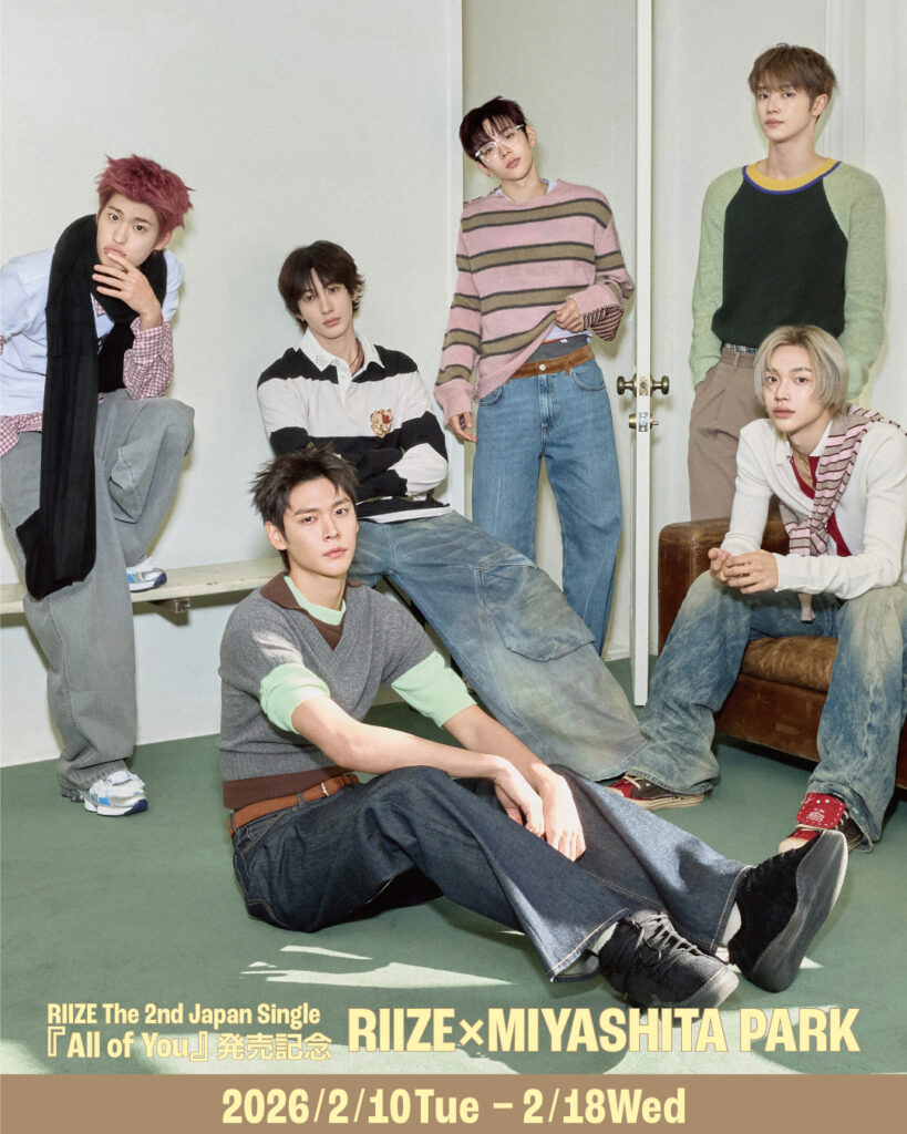 RIIZEが2026年2月18日(水)発売のRIIZE The 2nd Japan Single 『All of You』発売を記念して、2月10日(火)~2月18日(水)の期間、RIIZEとMIYASHITA PARKのコラボが決定した。