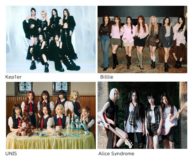 『Girls Evolution』と題した今回出演は、多国籍メンバーで構成されたグローバルグループで、圧倒的なパフォーマンス力で世界中のファンを魅了するKep1er、独自のストーリーテリングと高い音楽性と緻密に構築された世界観と完成度の高いパフォーマンスで、唯一無二の存在感を放つBilllie、エネルギッシュなパフォーマンスと高い完成度で、急速に注目を集め次世代K-POPシーンを担う存在として期待を集めるUNIS、さらに、独自の感性と表現力で存在感を放つヴィジュアル系ガールズバンドのAlice Syndromeも出演します!